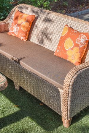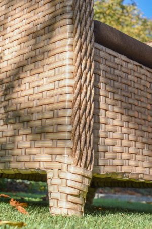 Всё выполнено с использованием искусственного ротанга, который прекрасно переносит перепады