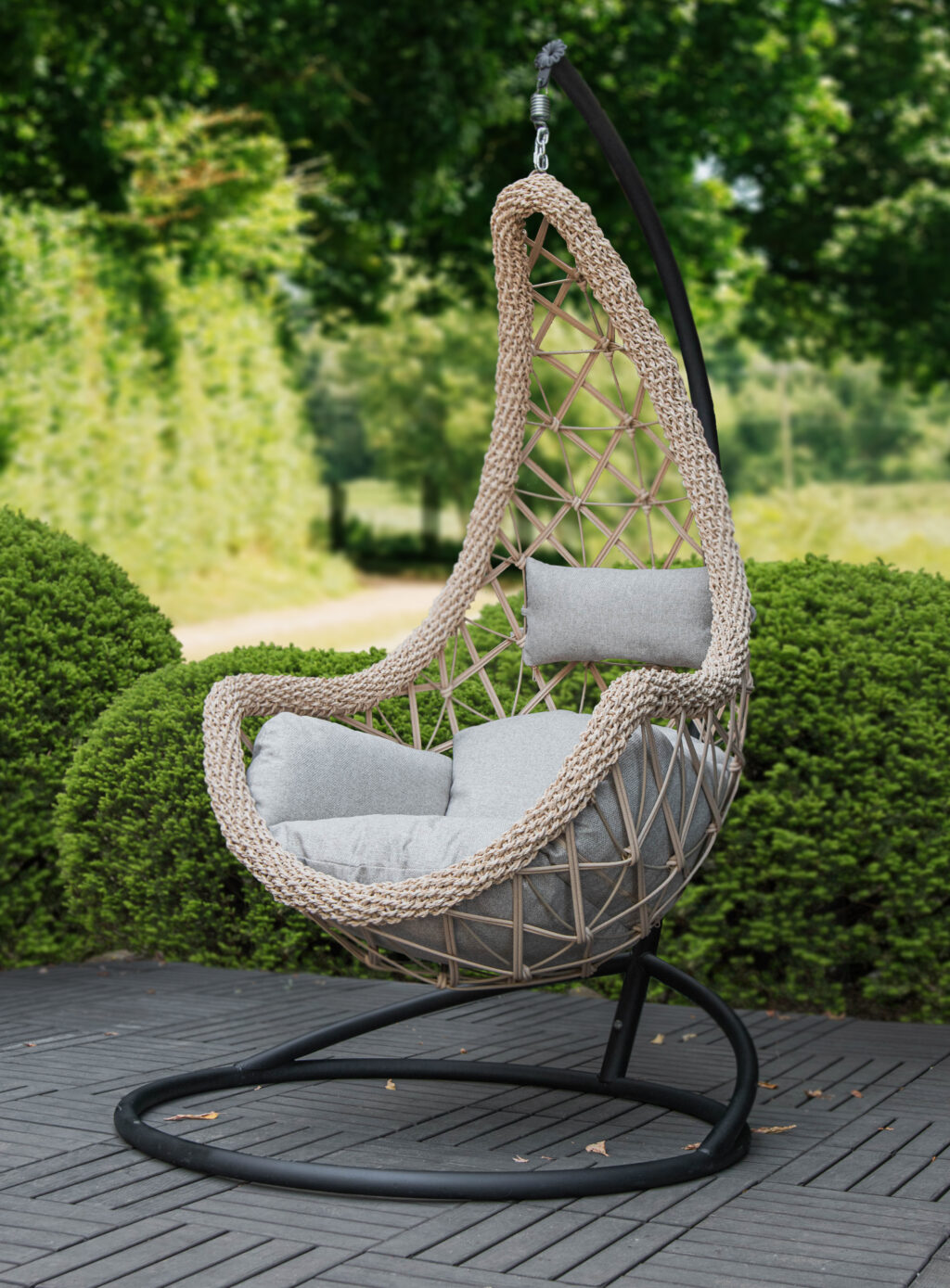 Плетенный кокон имеет особое расположение, благодаря которому достигается максимально комфортное положение тела, а его миниатюрные габариты позволяют установить его как в небольшой комнате, так и на на балконе.