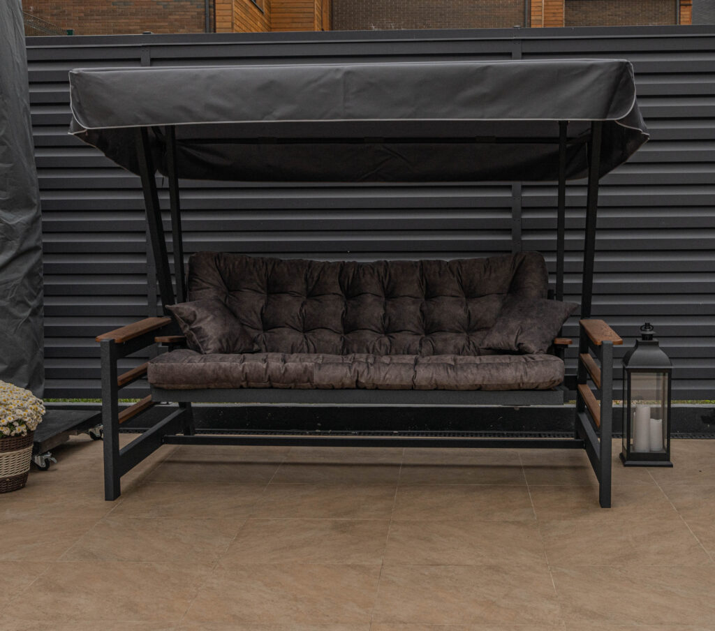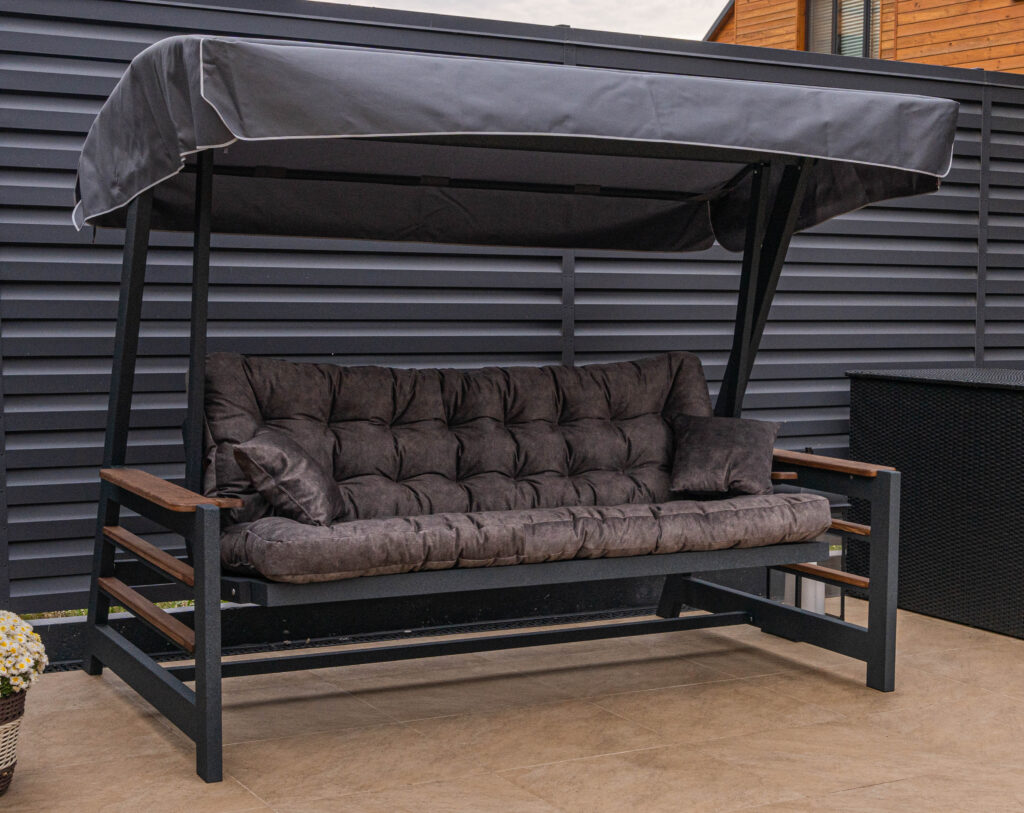 Отдельно стоит отметить внешний вид мебели. Качели для сада Корлеоне прекрасно сочетают в себе строгость, утонченность и стиль. Модный корпус в темно-сером цвете со вставками под дерево по бокам смотрится дорого и привлекательно. Если вам нравится скандинавский стиль, то представленная модель качелей полностью соответствует вашим предпочтениям.